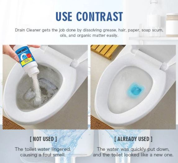 • Drain Cleaner gets the job done by dissolving grease, hair, paper, soap scum, oils, and organic matter easily.